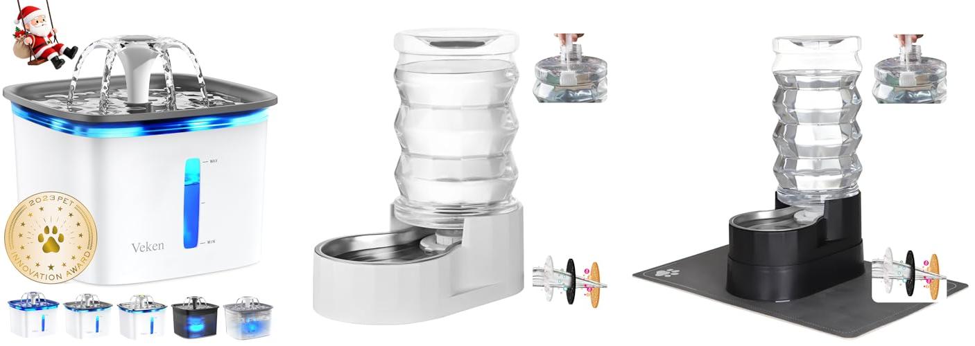 The Veken 95oz/2.8L Pet Fountain is an award-winning automatic water dispenser designed to keep your furry friends hydrated and happy. This grey plastic fountain is perfect for cats, dogs, and even multiple pets, making it a great gift, especially for the holidays.