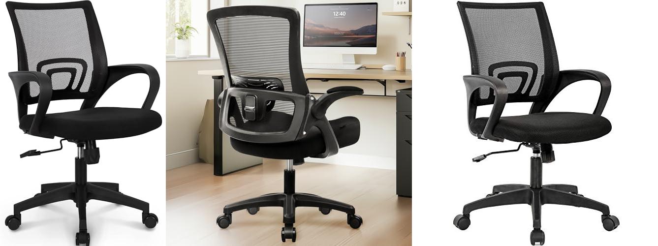 1. NEO CHAIR Office Chair Computer Desk Chair Gaming Ergonomic Mid Back Cushion Lumbar Support with Comfy Mesh Adjustable Swivel Rolling Home (Black)