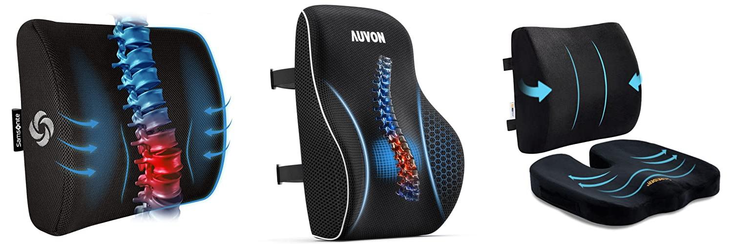 The SAMSONITE Lumbar Support Pillow is a great option for anyone who sits for long periods. It is designed to make your back feel better and improve your posture.