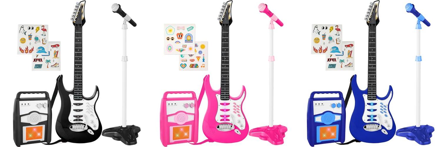 This guitar set offers a fantastic introduction to music for kids. It’s a fun way for them to explore their creativity and develop a love for sound.
