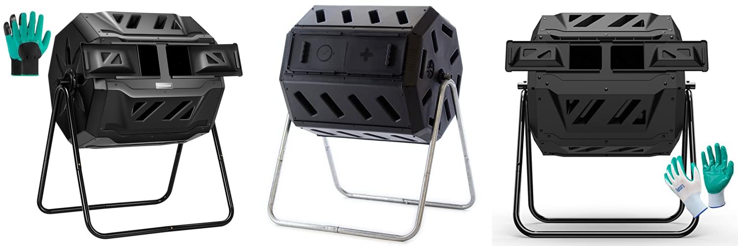 3. Compost Tumbler Bin Composter Dual Chamber 43 Gallon (Bundled with Pearson’s Gardening Gloves)