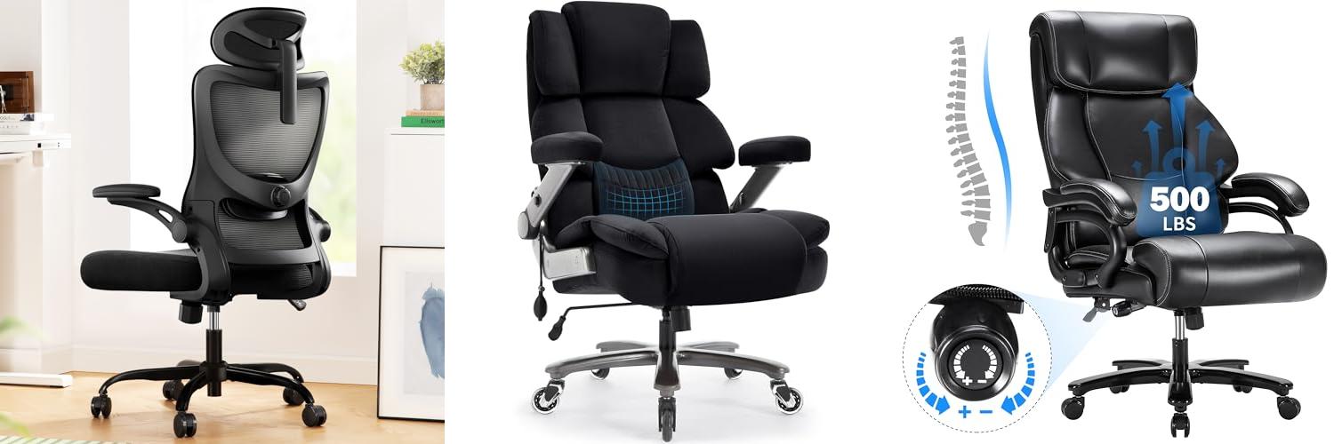 The GABRYLLY Ergonomic Office Chair is designed for comfort while you work. It’s a high-back desk chair with a headrest, flip-up arms, and a tilt lock. This chair aims to support your back, head, hips, and arms. It’s built for people between 5’5″ and 6’2″ and can hold up to 400 lbs. The mesh design helps you stay cool. It’s a good choice for long workdays.