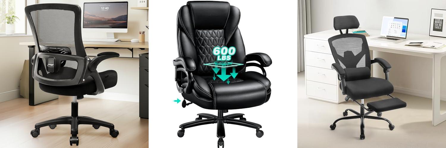 The COLAMY High Back Executive Office Chair is designed for comfort and support. This ergonomic chair is perfect for working or studying at home. It features bonded leather, flip-up arms, and an adjustable lumbar support. You can also adjust the tilt and height to find the perfect position. This chair is a great option for anyone who spends a lot of time sitting at a desk.