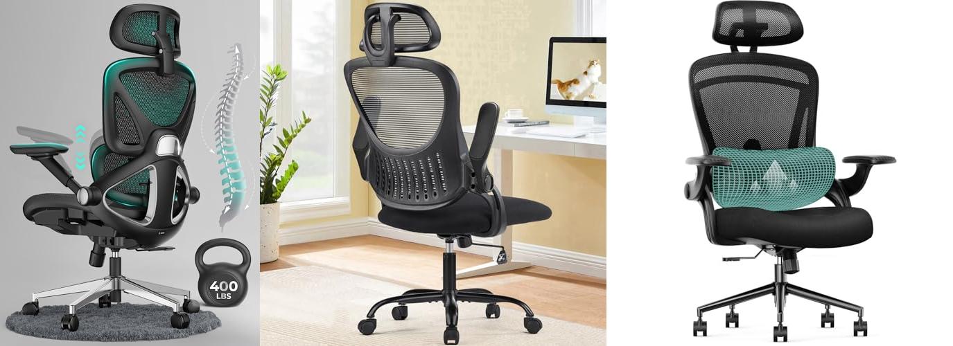 The GABRYLLY Ergonomic Office Chair is a smart choice for anyone working long hours at a desk. This high-back chair offers great support with its headrest, adjustable features, and comfortable mesh design. It’s built for users between 5’5″ and 6’2″ and can hold up to 400 lbs. The flip-up arms save space, and the chair’s recline function helps you relax. It is a good choice for home or office use.