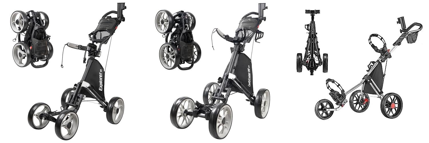 1. Caddytek Explorer V8 Golf Push Cart – SuperLite 4 Wheel Aluminum Foldable Cart with Adjustable Front Wheel Width