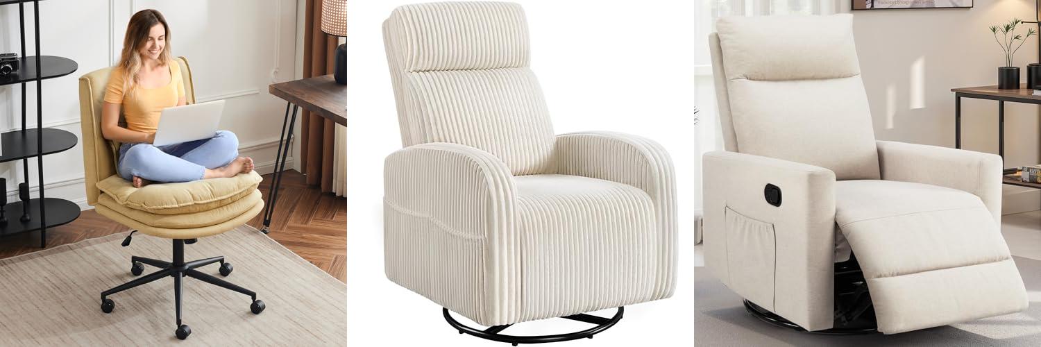 The SMUG Swivel Rocking Recliner Chair is a comfy chair for your home. It’s perfect for relaxing in the nursery, living room, or bedroom. This chair has an extra-large footrest and a high back. It’s a great place to unwind after a long day. The beige color will match any room’s style. It is made for comfort and ease of use.