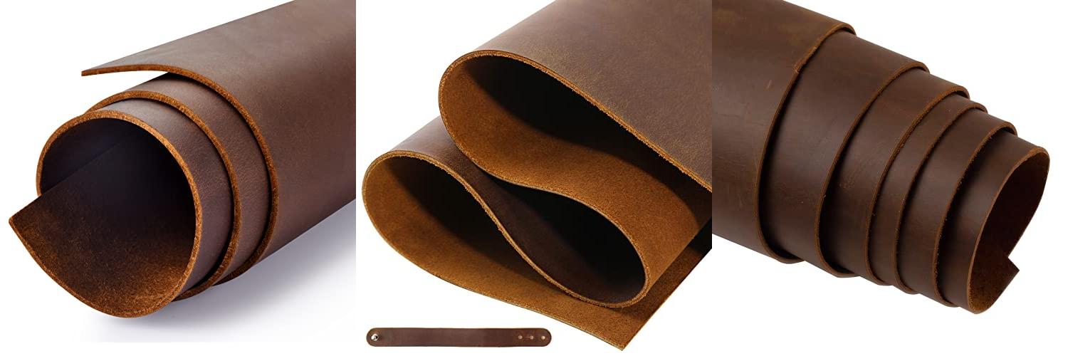 5. Genuine Leather Tooling Sheets 1.8-2.0MM Thick Full Grain Oil Tan Crazy Horse Cowhide Leather Sheets for Crafts Tooling Sewing Wallet Earring Hobby (Brown