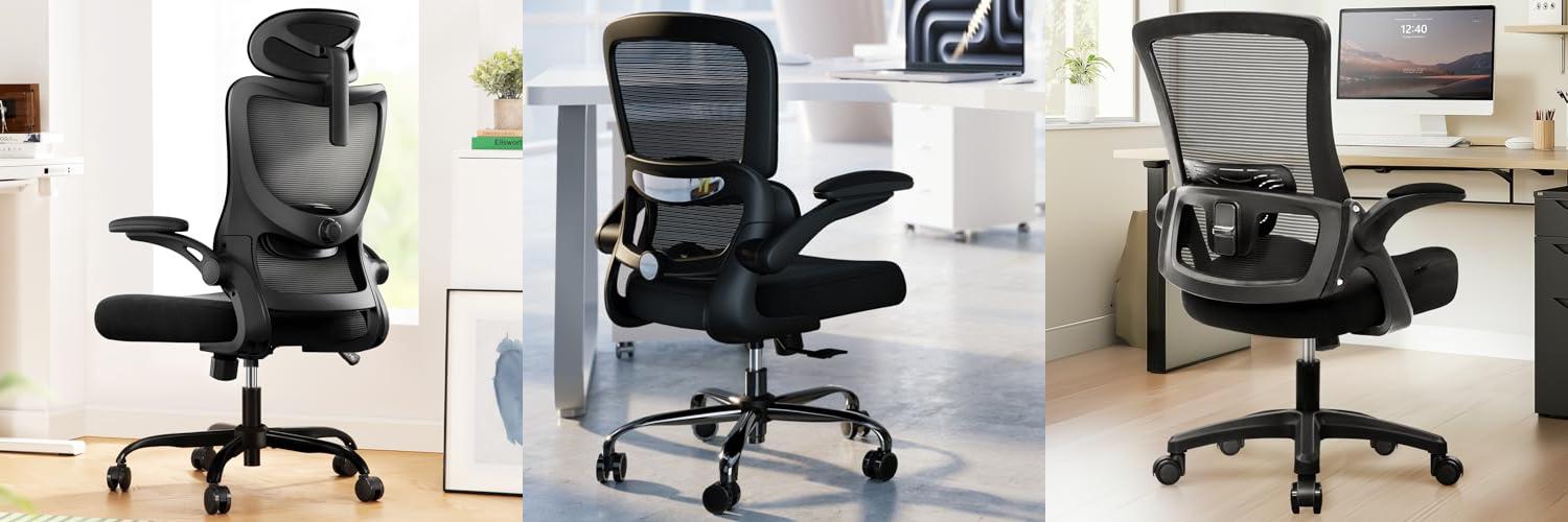 3. NEO CHAIR High Back Mesh Office Chair with Adjustable Height Ergonomic Design Executive Lumbar Support Padded Flip-up Armrests and Swivel Function for Home Office Gaming Computer Desk (Black)