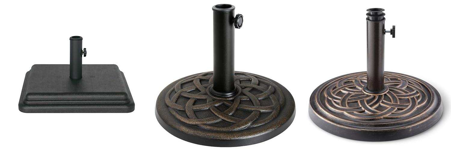 This umbrella base is a reliable and attractive choice for securing your patio umbrella. It offers great versatility in pole size and promises long-lasting use without the worry of rust.