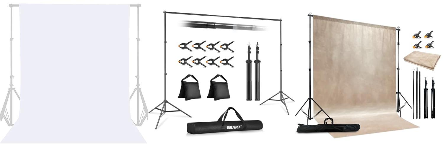The EMART Backdrop Stand is a good choice for people who need a versatile and portable backdrop solution. This kit offers great value for its price and is easy to use for various photography and decorating needs.