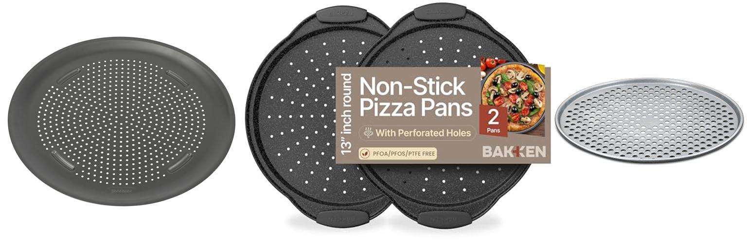 A: Pans with holes, or perforations, help hot air circulate. This makes the crust crispier. They are great if you like a crunchy bottom.