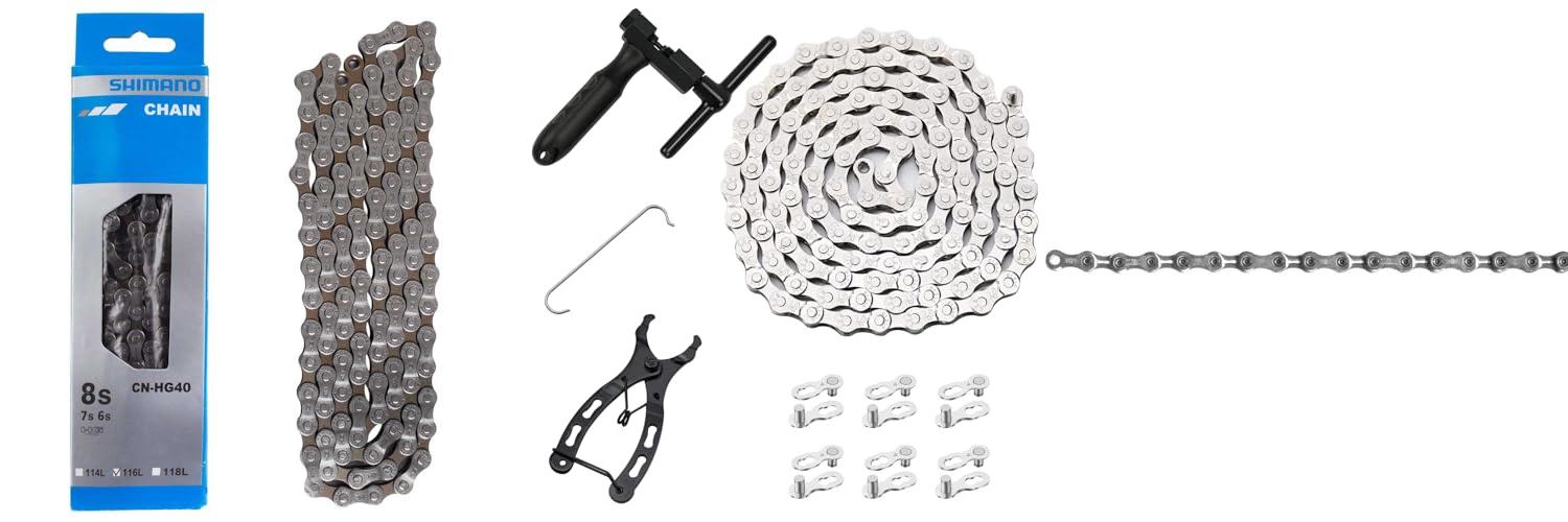 • The kit comes with a 6/7/8 speed chain, a special bike link plier with a hook, a chain breaker tool, and six pairs of reusable chain buckles. This means you have all the essential tools in one package.