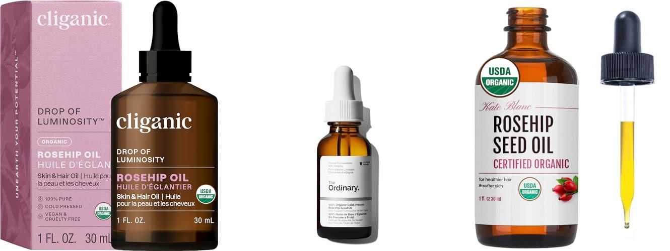 - ROSEHIP SEED OIL FOR FACE: It can make your skin glow. It has vitamins and retinol to help with wrinkles.