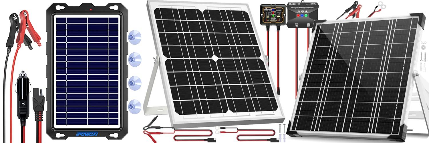 1. POWOXI Upgraded 7.5W-Solar-Battery-Trickle-Charger-Maintainer-12V Portable Waterproof Solar Panel Trickle Charging Kit for Car
