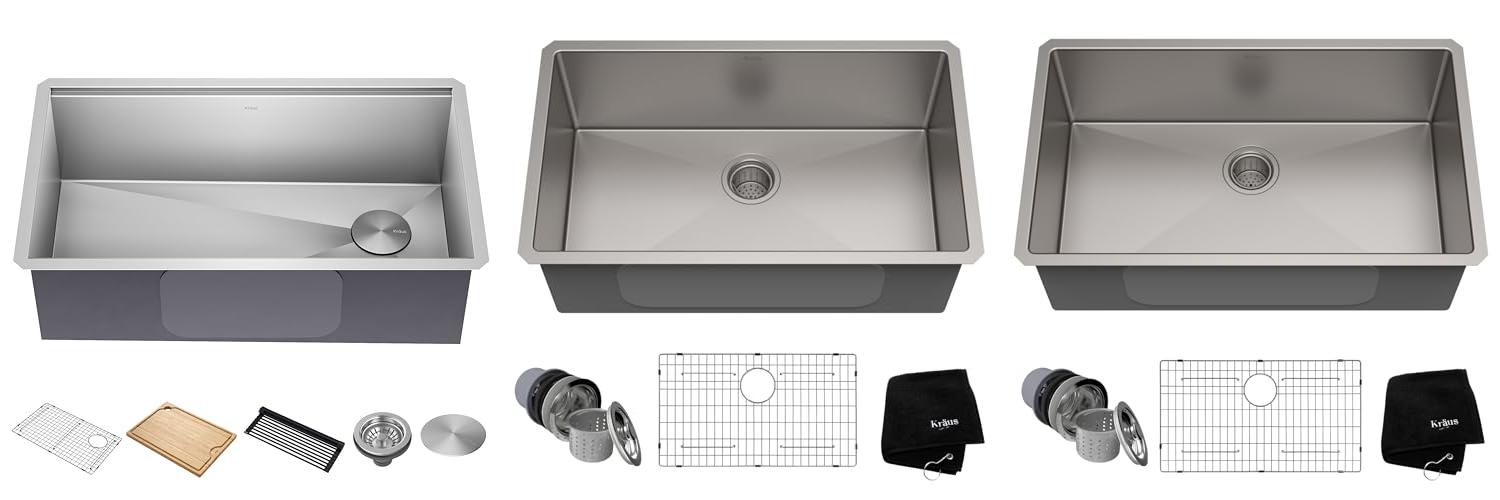 The KRAUS Kore Workstation kitchen sink is a smart choice for your kitchen. This undermount sink is made of strong stainless steel and comes with cool accessories. It lets you work right over the sink, saving space on your counter. This single-bowl sink looks great and is easy to clean.