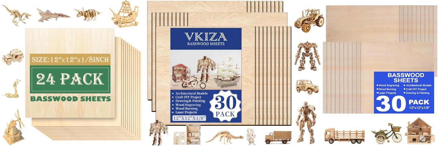 1. 24 Pack 12″x12″Basswood Sheets 1/8″